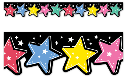 This Star Bright EZ Border is the perfect way to frame displays of students’ stellar work! The bold and bright colorful stars are sure to liven up any room. This EZ Border comes in smaller strips, which are easier to manage and store. Each package comes with enough border to complete 2 full bulletin boards.